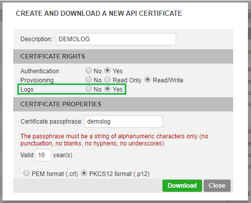 As stated in the prerequisite, you can only access Audit Trails API address with the “inWebo” option and "logs" enabled certificate.