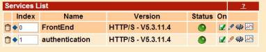 Connect to your BoostEdge Administration interface. Go to Setup → Services. In this example, We have a frontend service waiting on port 7878, and an authentication service waiting for requests on port 2000. All requests to myapp.customer.com are managed by the “FrontEnd” service.