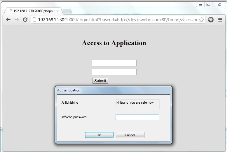 Open a browser to the url http://myapp.customer.com, which will be redirected to BoostEdge login page. Since you are using InWebo, the authentication popup will appear automatically, prompting you for your InWebo password.