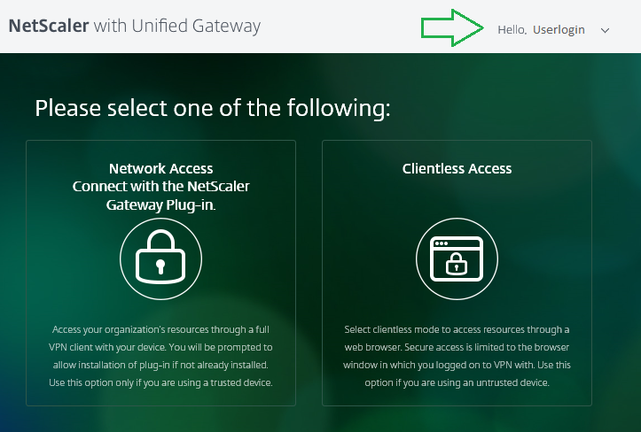On successful authentication you'll be redirected to the Netscaler Unified Gateway and your inWebo login will be displayed