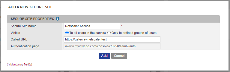 Redirect URL: https://www.myinwebo.com/console/c/XXXX/saml2/XXXX