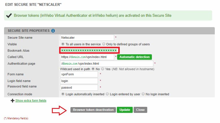 Creating a new inWebo secure site for your Citrix Netscaler portal page