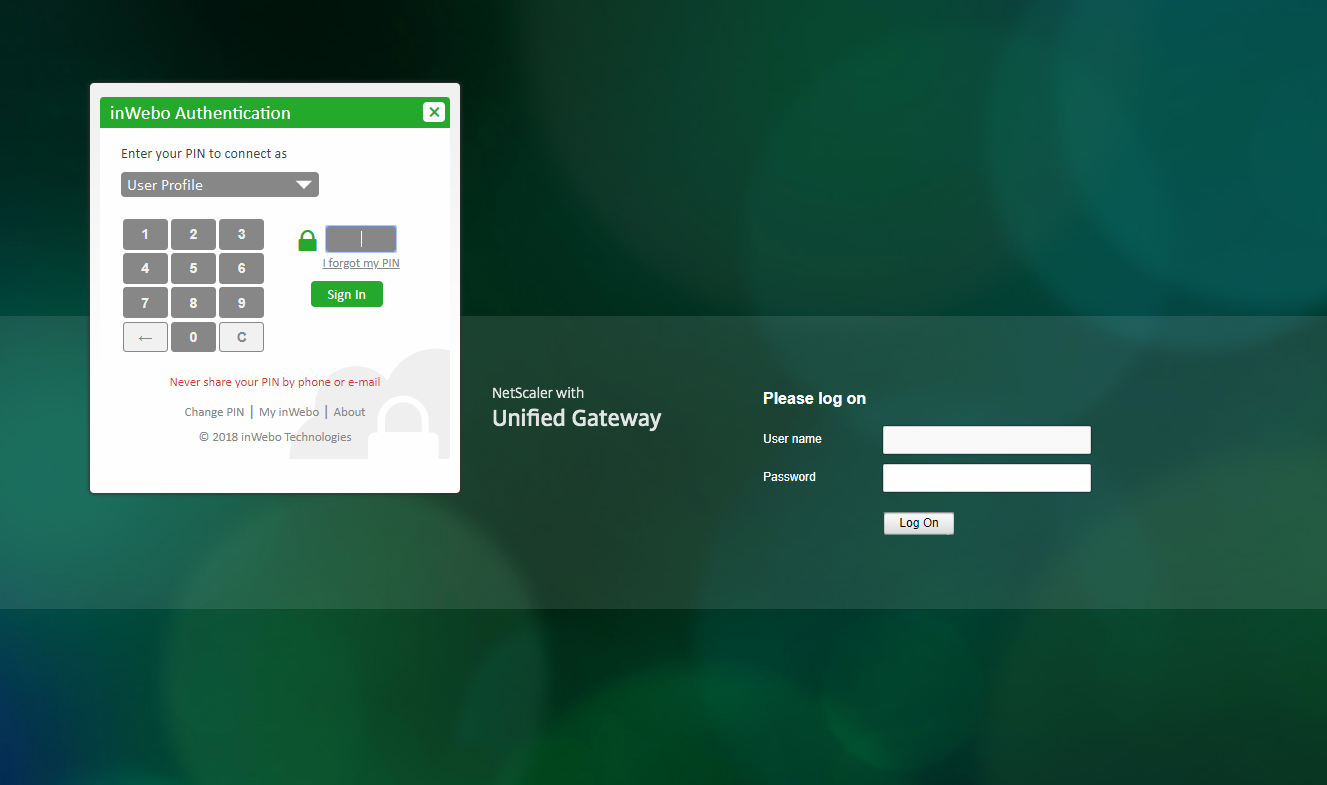 Once authenticated with a PIN code the inWebo frame will automatically fill in the SAMAccount or the UPN(user@domain) and generate the OTP