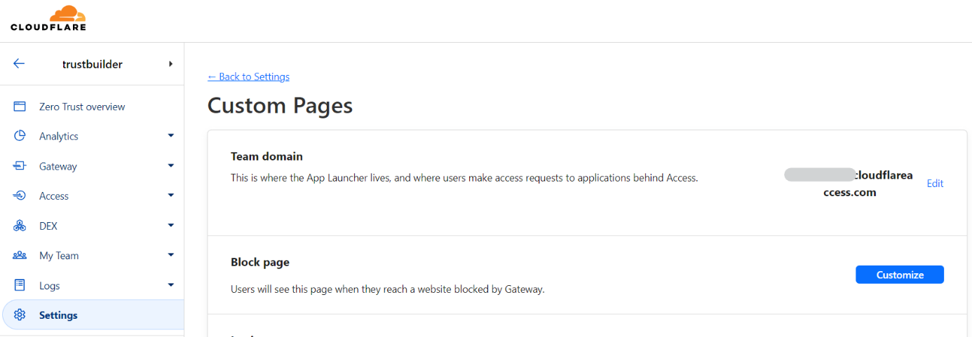 You can find your team’s name in Zero Trust under Settings > Custom Page