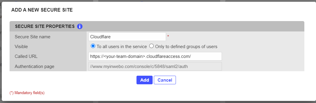 The configuration consists of an exchange of metadata between the SP (Cloudflare) and the IdP (TrustBuilder): each provides its metadata to the other. Then, it is necessary to make sure that TrustBuilder provides attributes that match with the attributes requires by Cloudflare.