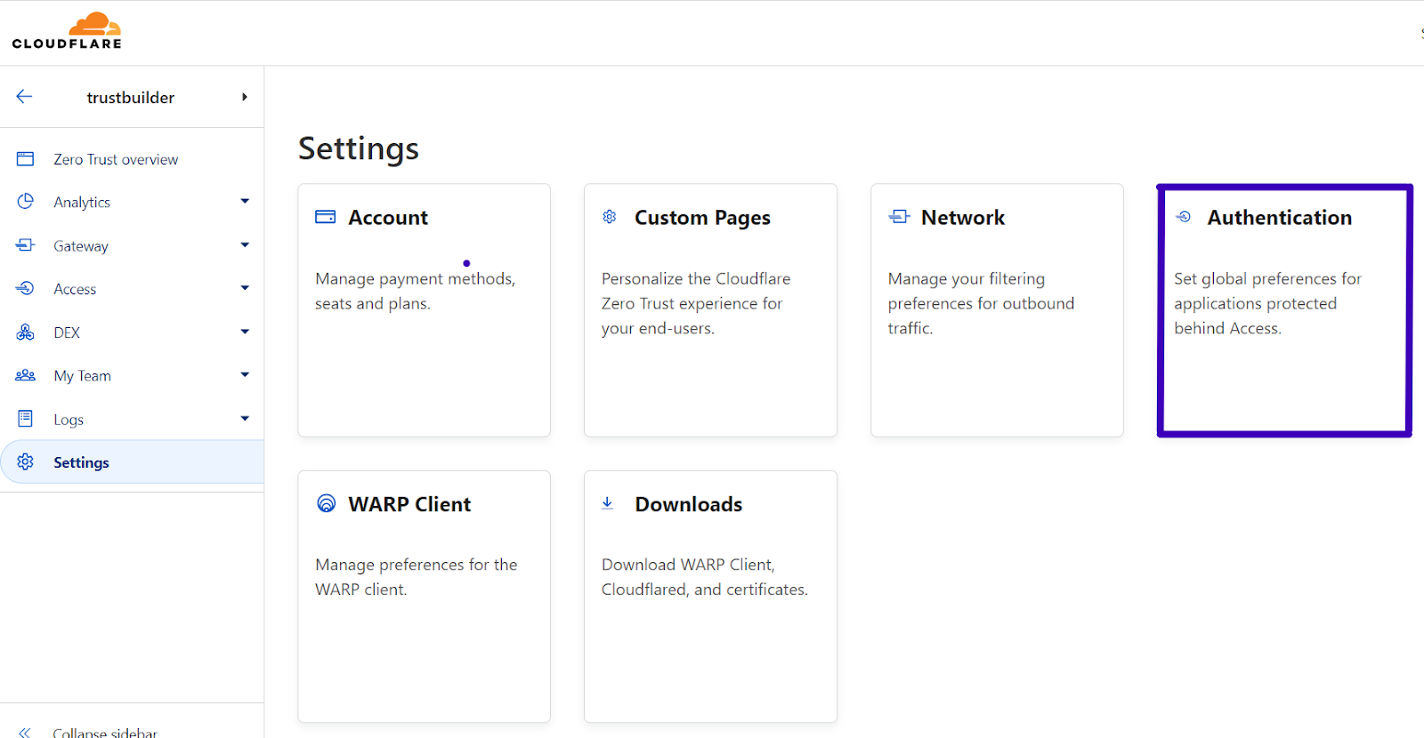 In Zero Trust, go to Settings > Authentication