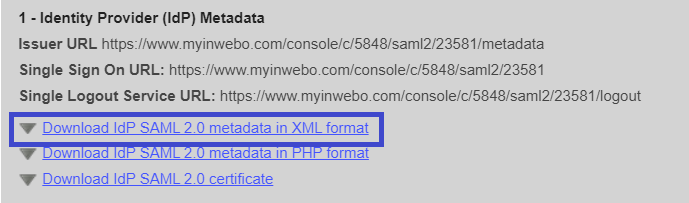This will bring up the TrustBuilder (the Identity Provider) metadata.Click on ”Download the Idp SAML 2.0 metadata in XML format” to save TrustBuilder metadata. You will need it later in Cloudflare configuration.