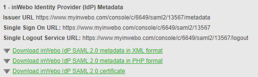 Download the inWebo IDP metadata by clicking on "Download inWebo IDP SAML 2.0 metadata in XML format"
