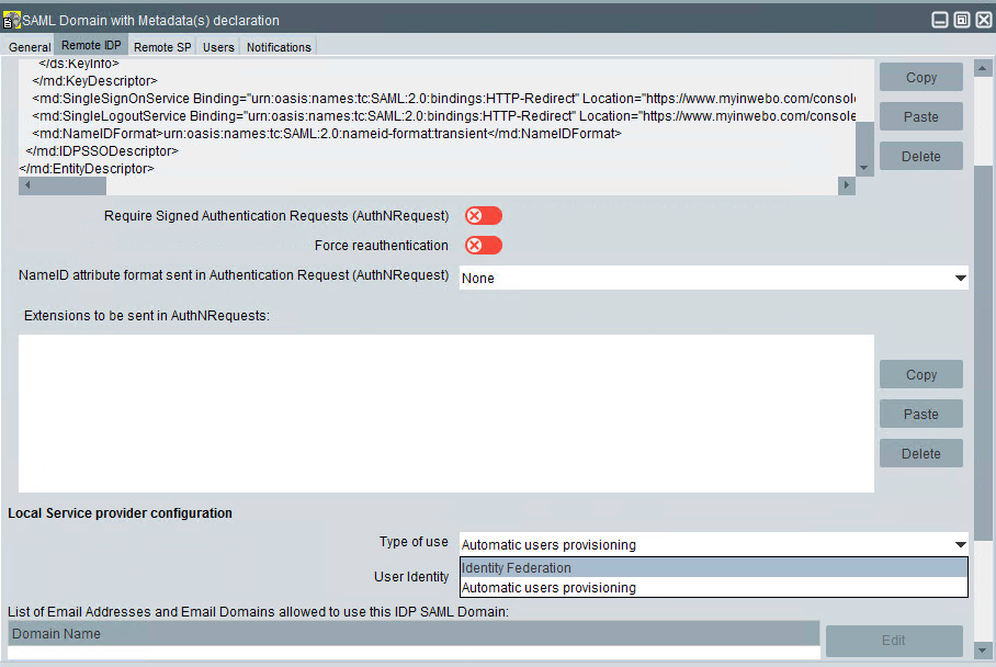 Declare a SAML Domain inWebo with Metadata