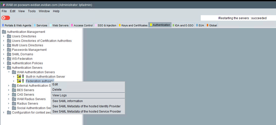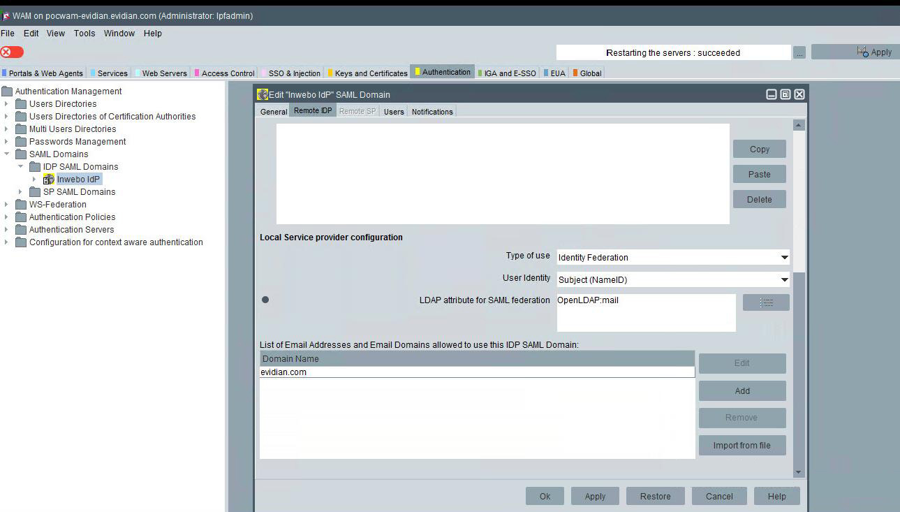 Federation License is uploaded in Evidian WAM for Federated Authentication