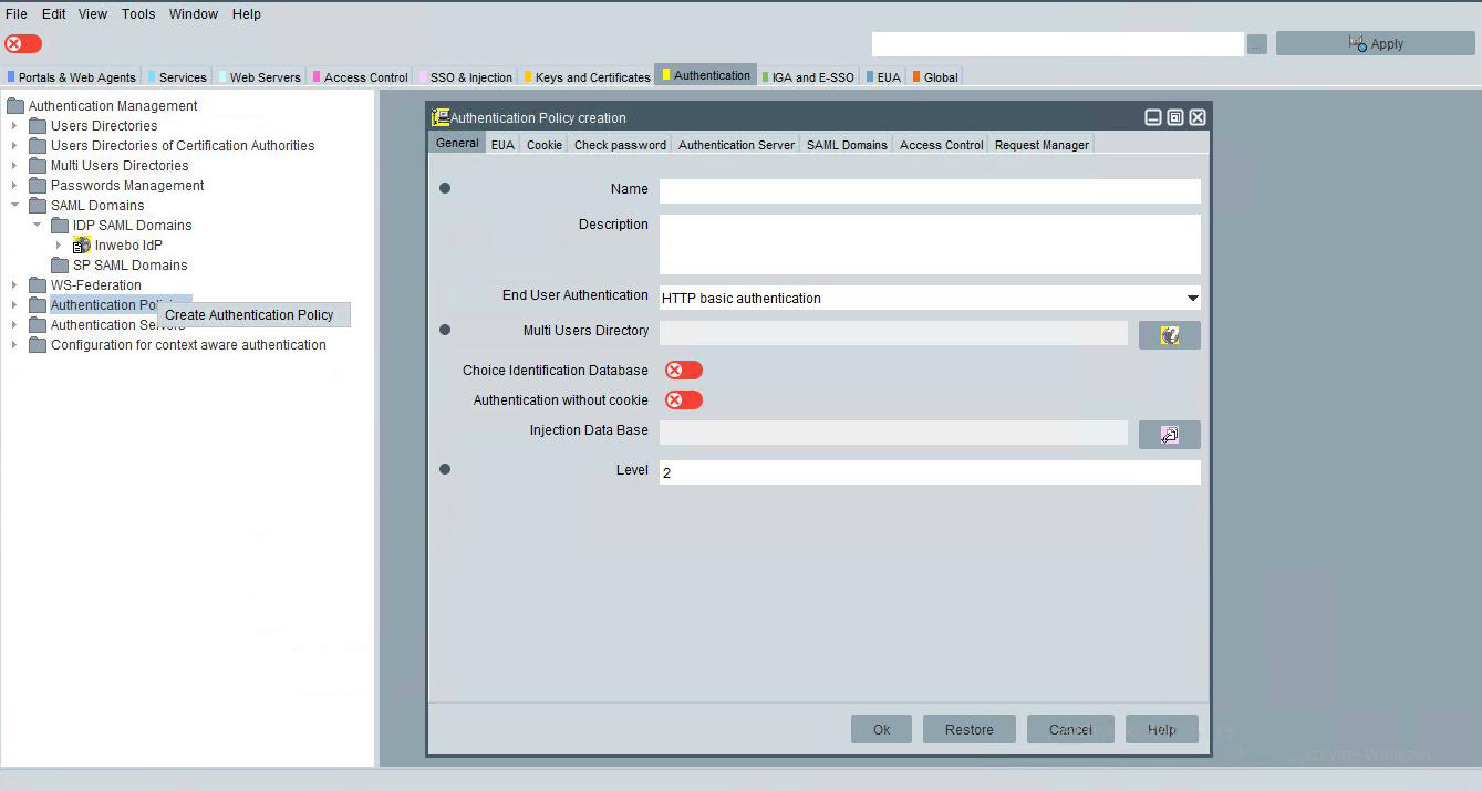 In the Authentication tab, right-click Authentication policies, and select create Authentication policy