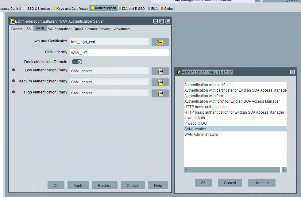 Evidian Web Access Manager (WAM) SAML v2 configuration