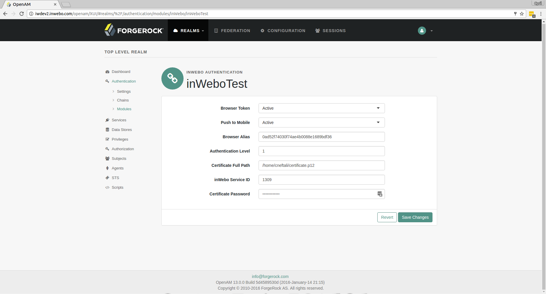 This is the procedure to integrate inWebo multi factor authentication service with "Forgerock OpenAM" authentication solution.