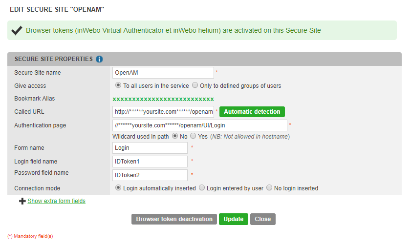 Configuration of the inWebo Secure Site
