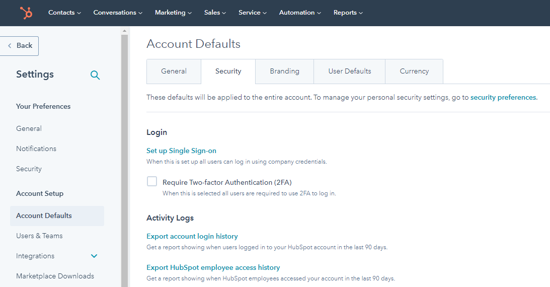 In your HubSpot account, click the settings settings icon in the main navigation bar.