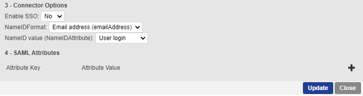 Edit the SAML connector in the inWebo administration console and configure section 3 as follow.