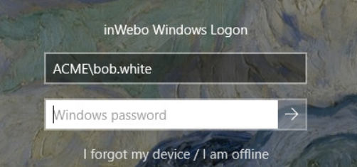 From the Windows login portal, the user click on “I forgot my device / I am offline”.