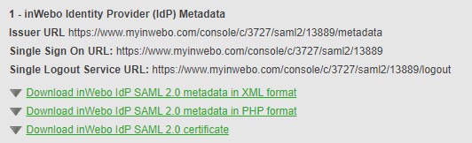 click on “Download inWebo IdP SAML 2.0 metadata in XML format”