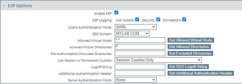 select the SAML connector name you configured. Configure the Secure site to point to the application protected by the Kemp virtual service (http://kempportal.mylab.com/ in this example).