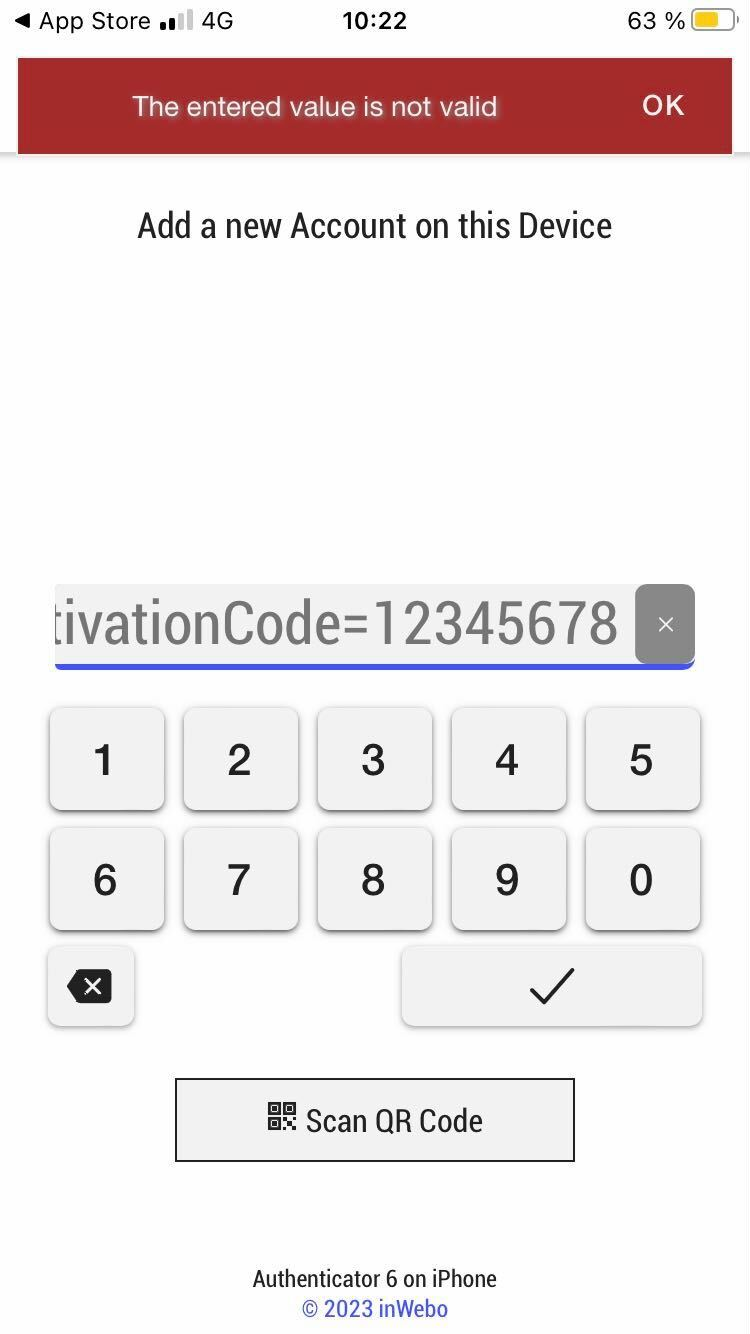 With Authenticator 6.32 and older, the scan of the QR code will insert the full URL in the activation field and not only the code.