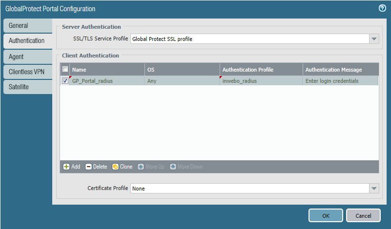 Configure the Global Protect Portal to use TrustBuilder MFA
