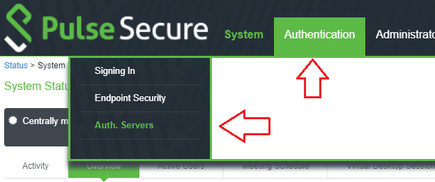 in the top menu, select Authentication > Auth. Servers