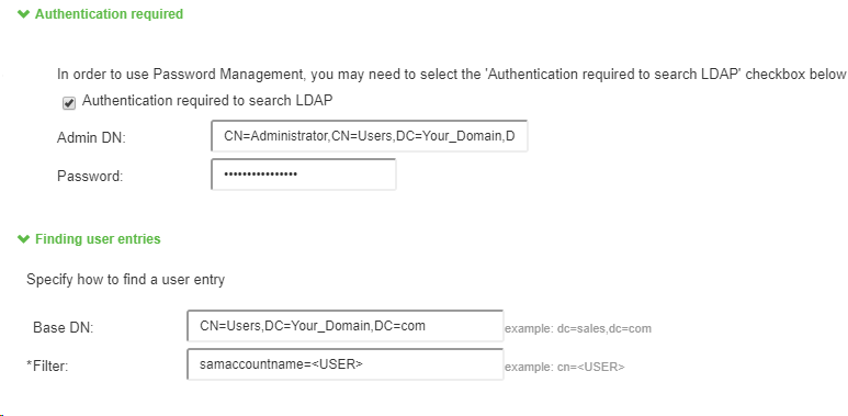 Indicates if needed the DN of the Administrator / Read account which will access your LDAP, the same as the account whitelisted in the LDAP proxy configuration.