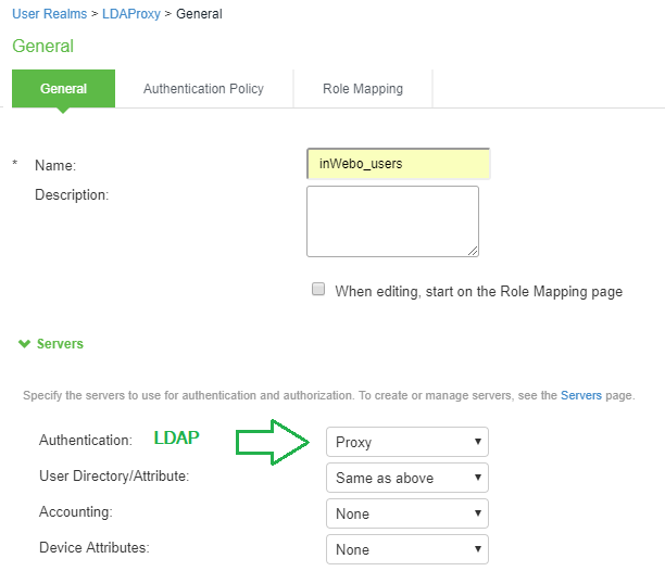 Indicates the information and the Authentication name of the inWebo LDAP Proxy server.