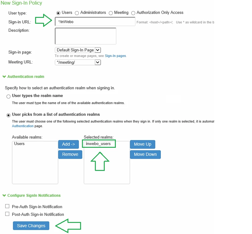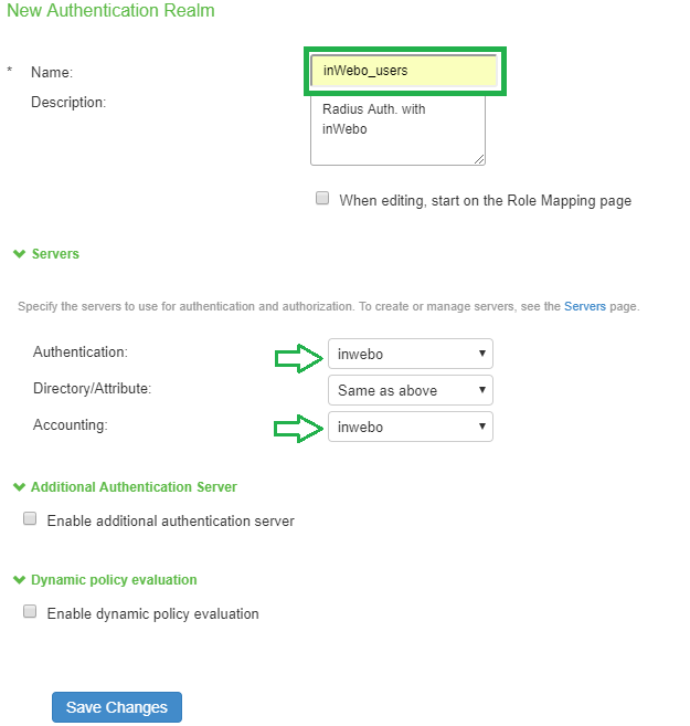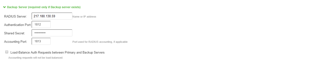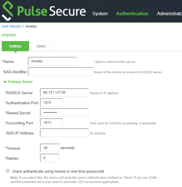 Fill the indication for your first inWebo RADIUS authentication server ex:radius1.myinwebo.com