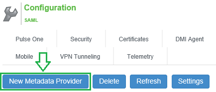 Return to the "SAML" configuration panel and select "New Metadata Provider"