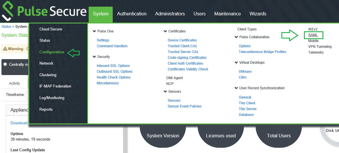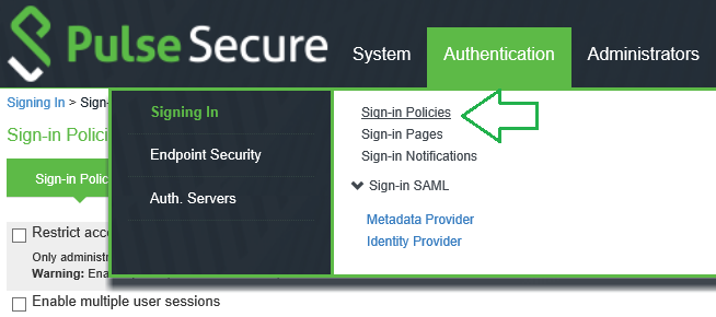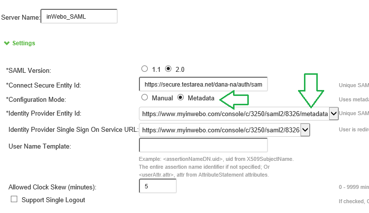 Copy/paste the XML SP metadata you downloaded from your Pulse Secure, when creating the SAML Authentication server: