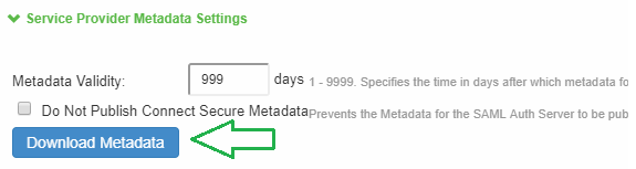 Click on "Download Metadata" to download the metadata of your Secure access. (previously grayed out)