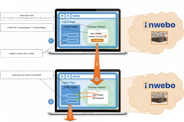 Optionally, to avoid the prompt in a 2-steps authentication process scenario for example, the login can be directly passed to Helium using the inwebo_login div. <div id=“inwebo_login”> LoginName </div>
