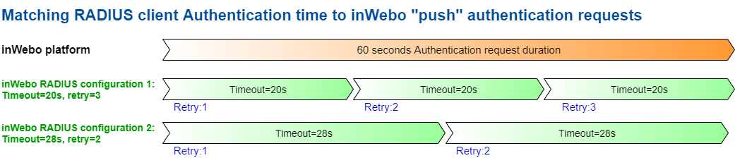Some appliances can met with troubles in "push" authentication mode as they do not accept custom RADIUS timeout configuration.