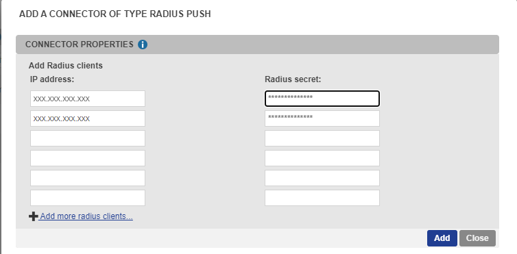 (As a reminder, a shared secret is a text string that serves as a password to secure communication between a RADIUS server and a RADIUS client)Validate your connector configuration by pressing “Add” or “Update” button.