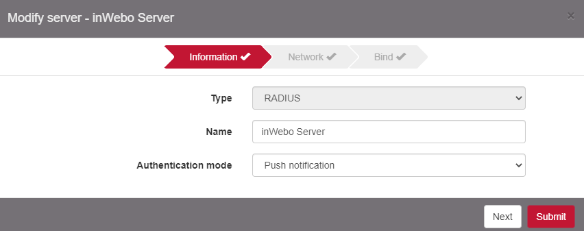 Click on Add new server and select RADIUS as a type. Make sure to select Push notification as authentication mode.