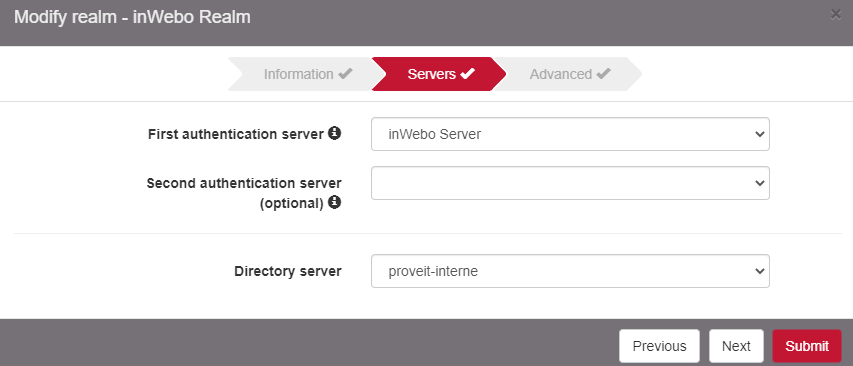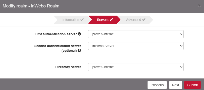 When inWebo RADIUS server is setting up as a Second authentication server, the first authentication might be PROVE IT-interne or LDAP.