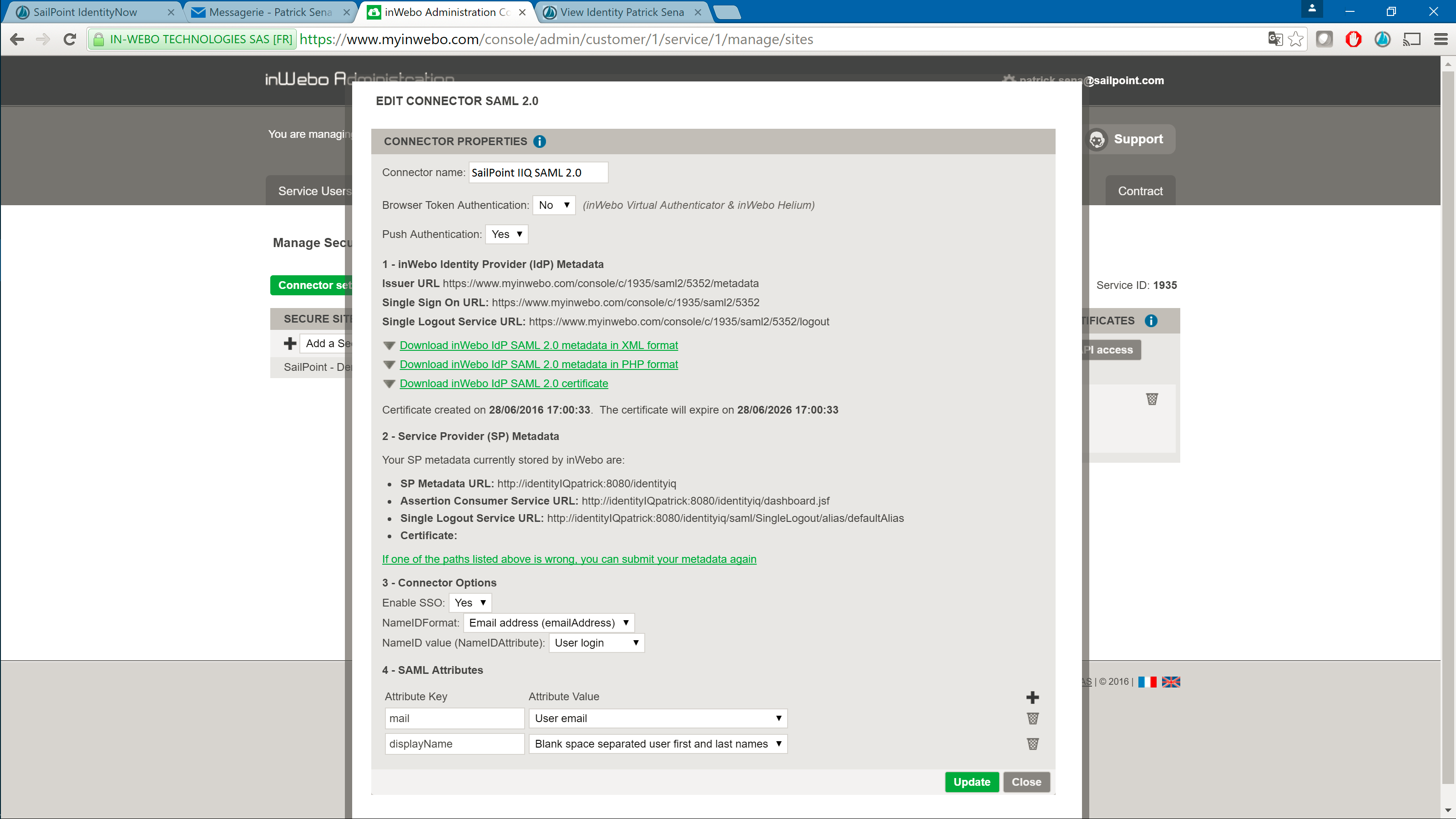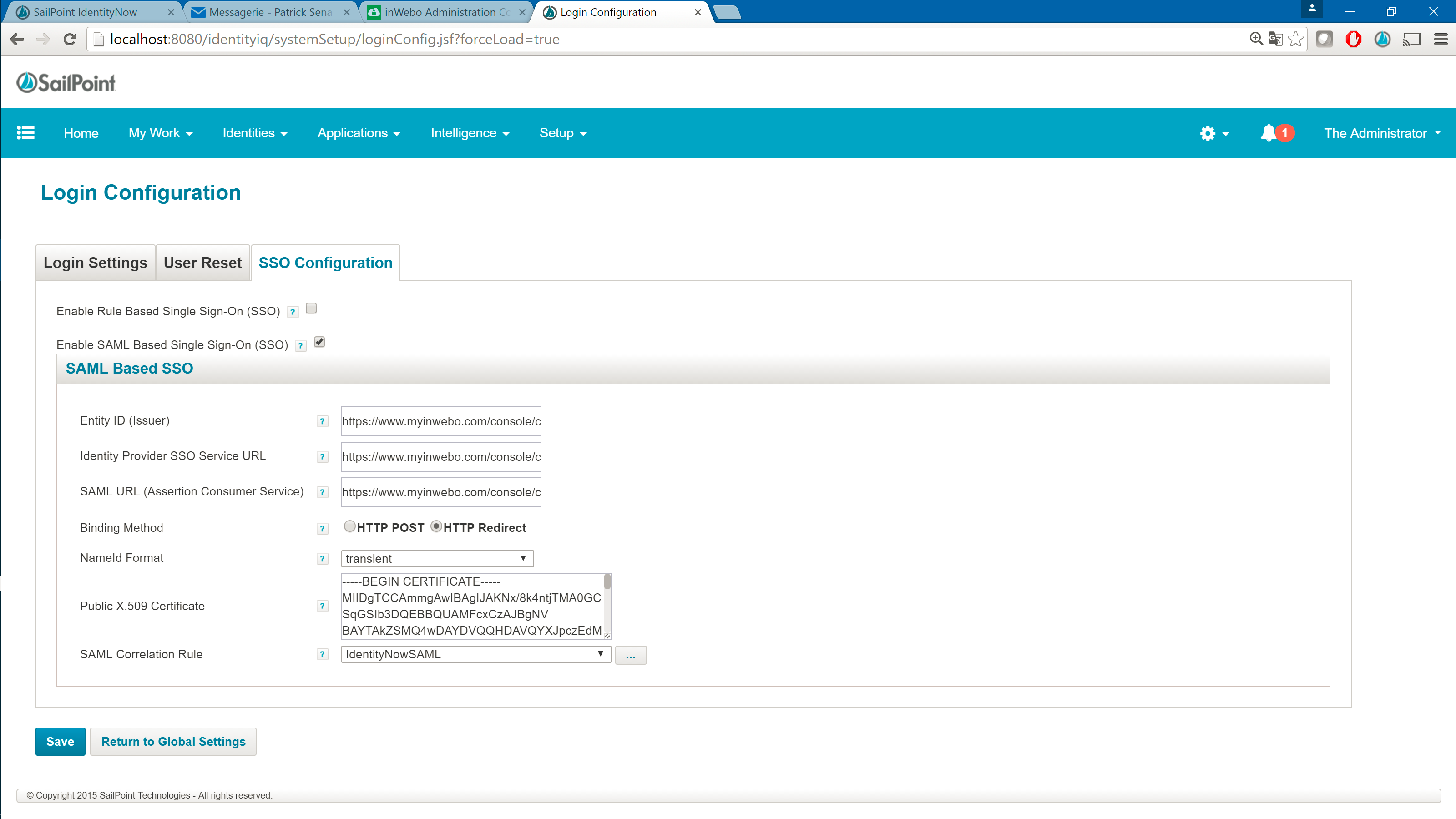 Configuring inWebo SAML authentication on Sailpoint IdentityIQ