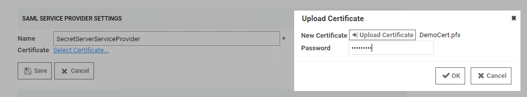 For on-premises instances: the uploaded certificate should match the one used for Secret Server's HTTPS configuration, OR it can be created as a self-signed certificate using the Powershell script here.For Secret Server Cloud users: you will need to generate your own certificate using the Powershell script here.