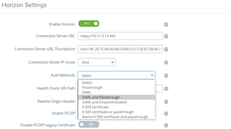Select “SAML and Passthrough” as the “Auth methods”,