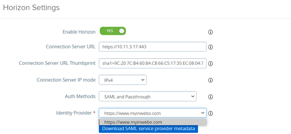 UAG will then provide the inWebo SAML assertion (after a successfull authentication) to Horizon Connection Server which will validate the assertion.