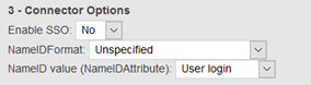 Update “Connector Options” and choose “Unspecified” as the NameIDFormat, then “user login” or “email” depending of the format of login you are using to authenticate