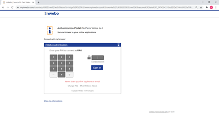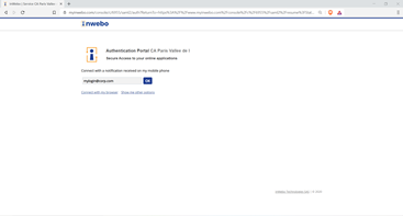 You will be automatically redirected on inWebo SAML authentication page where you can use your browser token to perform the inWebo Strong authentication as a first step