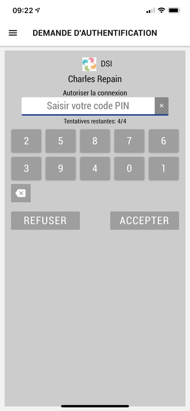 Step 2: Accept the authentication request by entering your pin