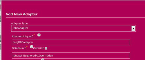 For example the JDBC adapter has an entry for DataSource. This is the name of a datasource that is configured in the application server.