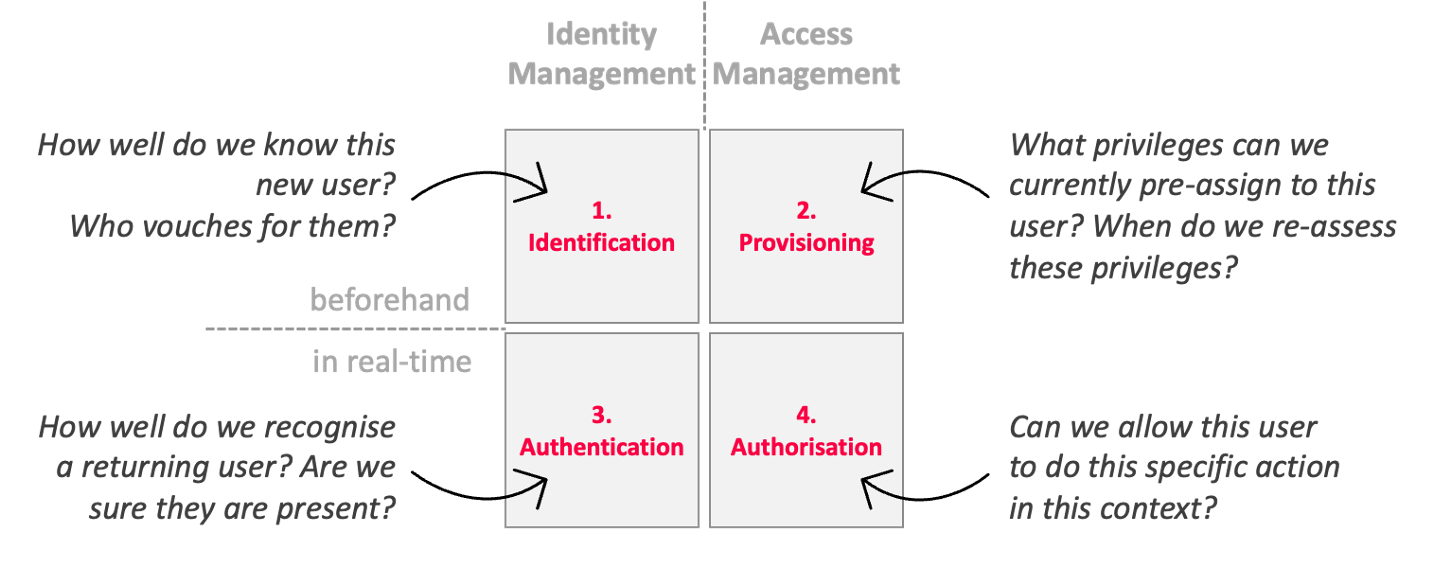 This model also clarifies the difference between what happens beforehand and what happens when people interact. Whereas the former is focused on the joiner/mover/leaver lifecycle, the latter is focused on decisions on the spot.