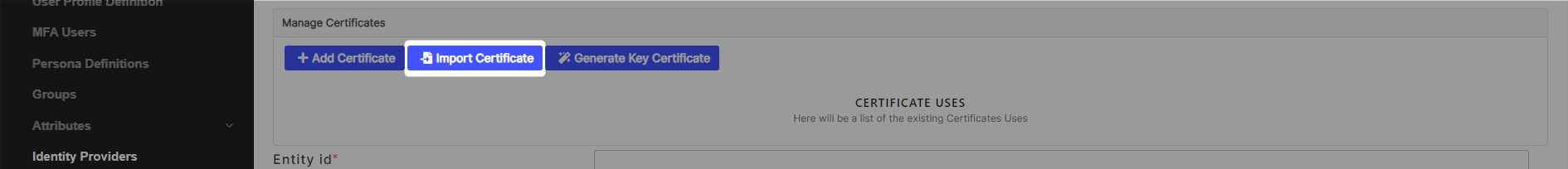 Click on Import Certificate.
