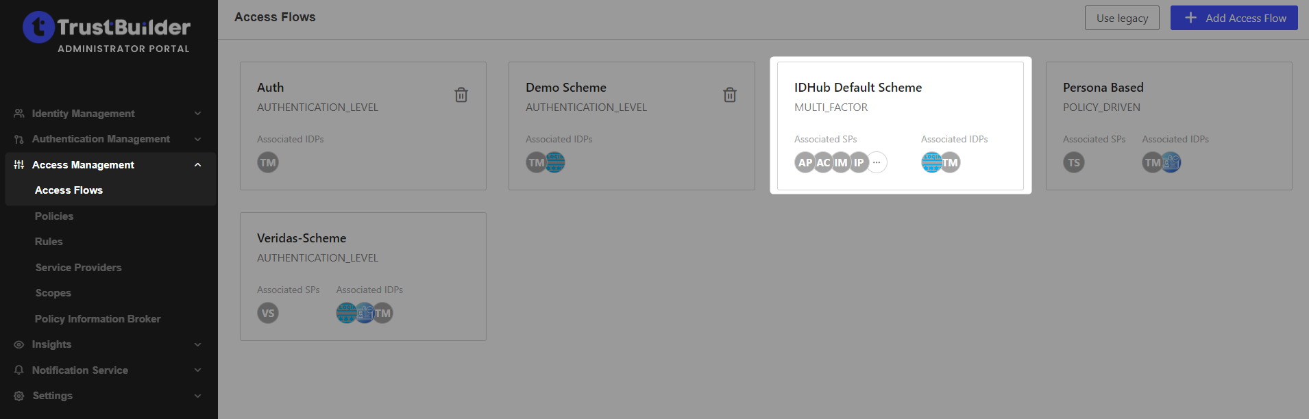 In TrustBuilder Admin portal, go to Access Management > Access flows.