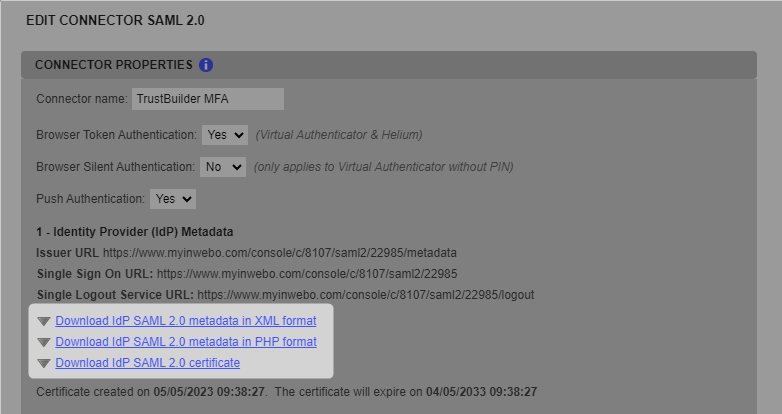 Go back to TrustBuilder MFA Admin console and edit the TrustBuilder SAML connector.