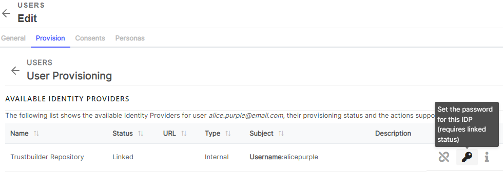 Go to Provision tab. The available Identity Providers for the user are listed.